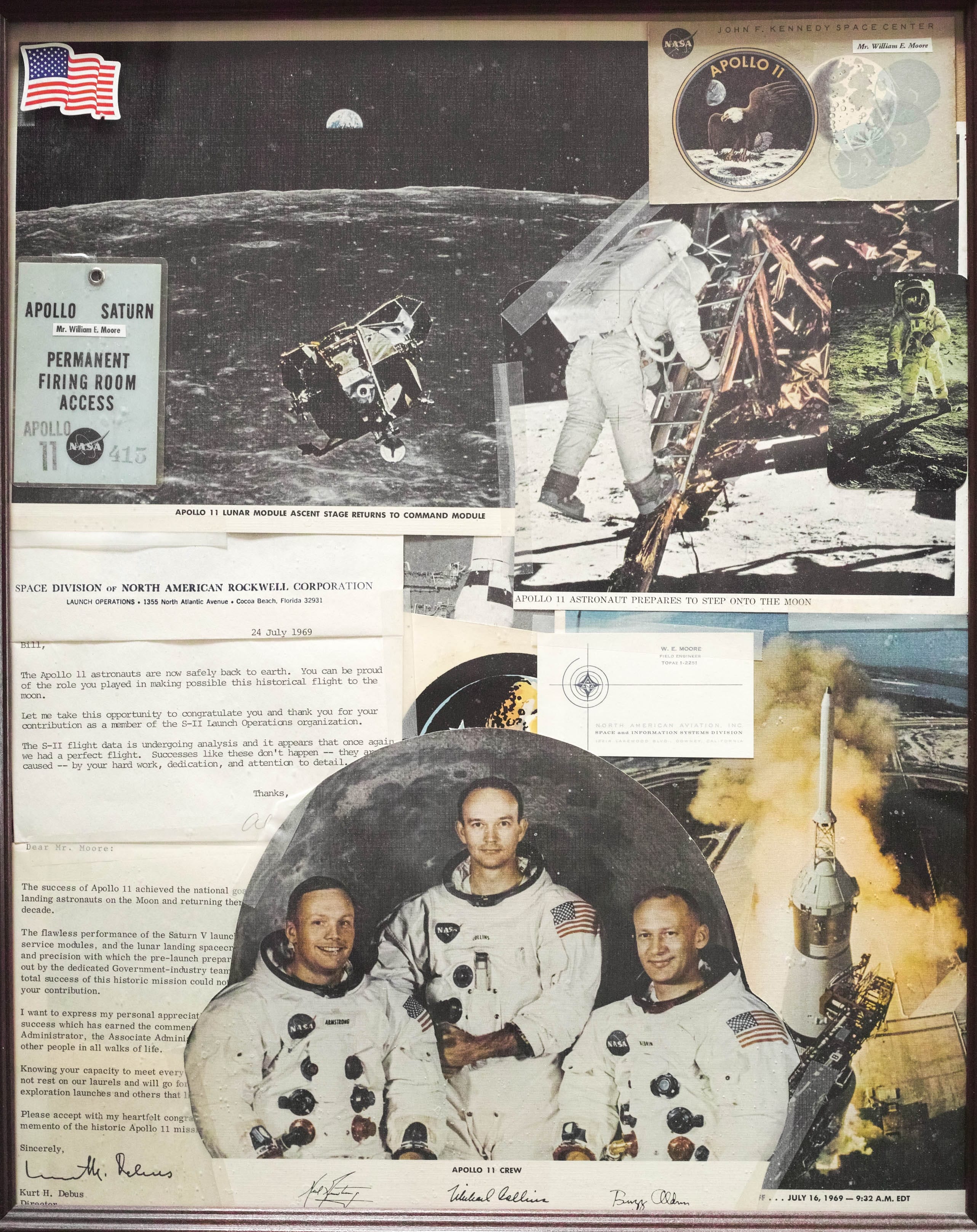 About thirty minutes later the five of us (Bob Kelso NRR Sr. Tech, Bill Moore; NAR Engineer/ Team Leader, the NASA Safety Engineer, the NRR Quality Control and the NASA Pad Leader) got the official word to head for the Launch Pad with our new Relay Pod. It was 11:30pm. It was a dark, slow, three mile trip. As we got closer to the Saturn V it was shrouded in a white cloud of venting gases which relieved the pressures building up inside the vehicle fuel tanks.